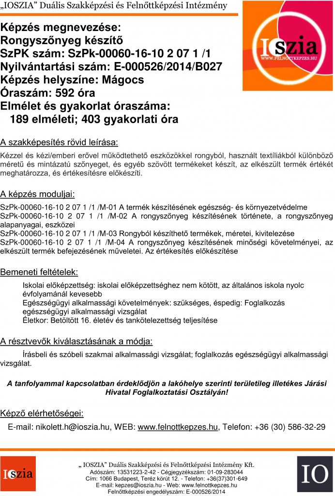 (OKJ szám: 52 811 01), (Engedélyszám: E-000526/2014/A039)