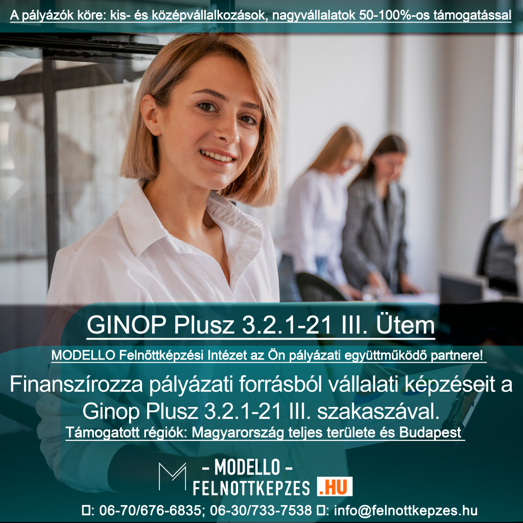 GINOP PLUSZ 3.2.1-21 Pályázat: Képzések Támogatása a MODELLO Módszertani és Képzési Intézet Segítségével