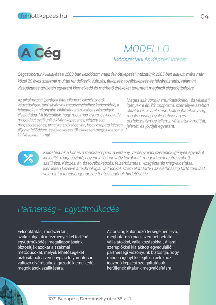 Mi biztosítjuk, hogy rugalmas, gyors, és innovatív megoldást szállítunk a kívánt képzéshez, végzettség