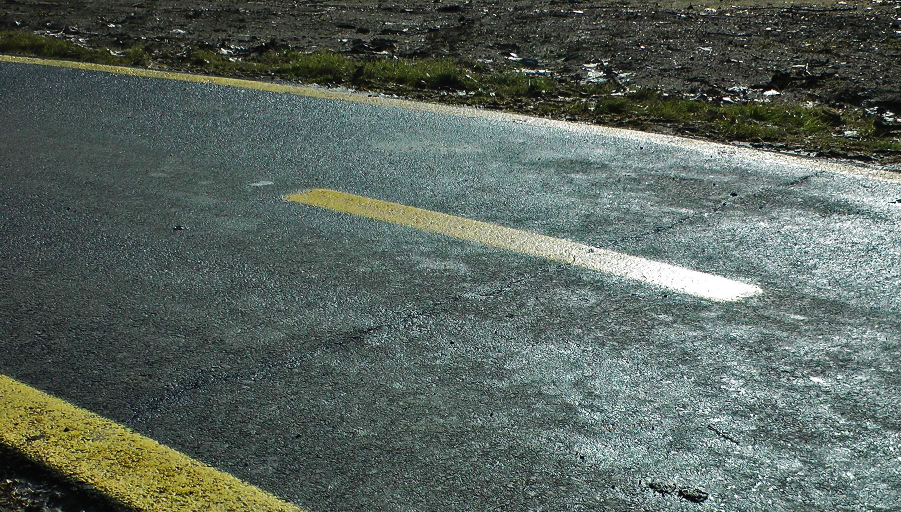 Ma kora délután mi is ott jártunk és szemrevételeztük, tapogattuk a repedéseket. Néhol alig lehet észrevenni a keresztirányú széltől-szélig húzódó hajszálrepedéseket, de az egyik kanyarban például eléggé feltűnő a töredezettség.